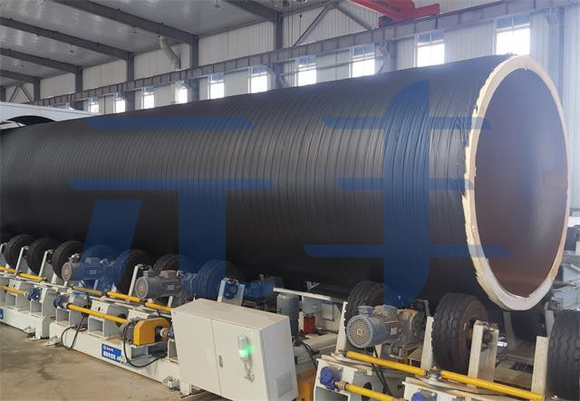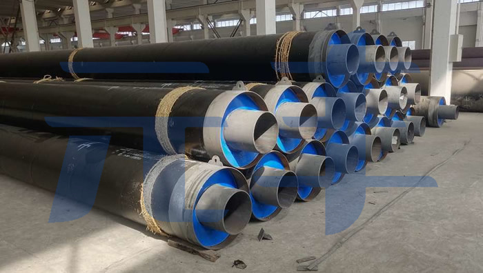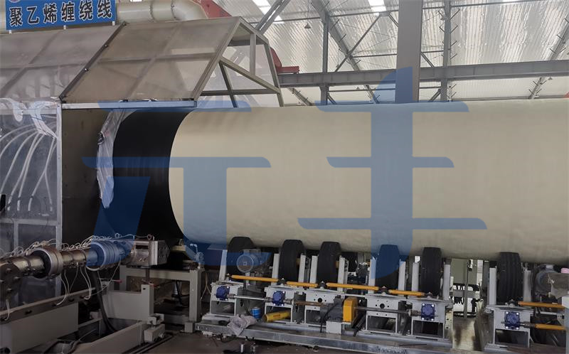硬質(zhì)聚氨酯噴涂聚乙烯纏繞預(yù)制直埋保溫管采用聚氨酯噴涂設(shè)備將混合均勾的聚氨酯原料連續(xù)噴涂到鋼管外表面,形成聚氨酯保溫層;保溫層成型后使用擠出設(shè)備將熔融的聚乙烯片材連續(xù)纏繞到其外表面,形成連續(xù)密實(shí)的聚乙烯外護(hù)層的工藝方法制作...